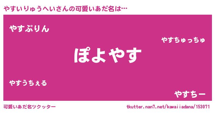| 男性向けラノベタイトル風あだ名 | 『この素晴らしい世界にやすいりゅうへいを!』 |