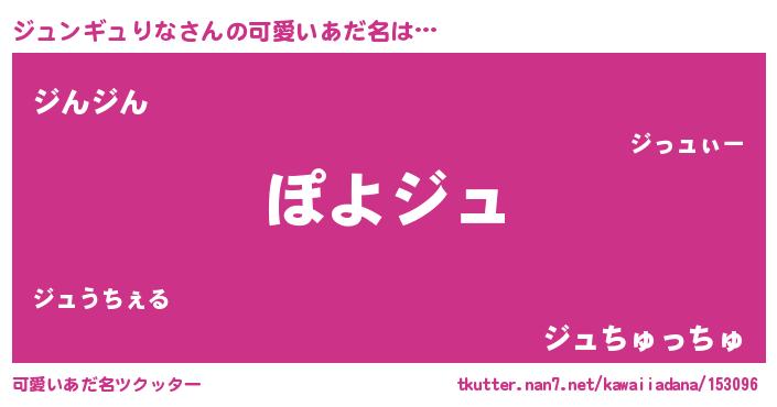 | 女子向けラノベタイトル風あだ名 | 『乙女ゲームの破滅フラグしかない悪役ジュンギュりなに転生してしまった…』 |