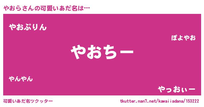 | 意味不明あだ名 | 『やおらフォーエバー』『ペロリンやおら』 |