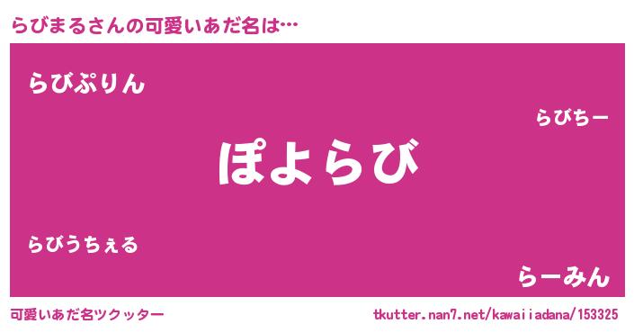| 男性向けラノベタイトル風あだ名 | 『この素晴らしい世界にらびまるを!』 |