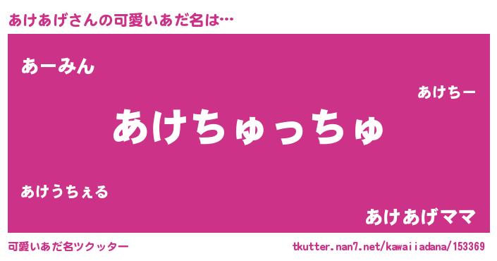 | ヒーロー風カッコイイあだ名 | 『天空の使者あけあげ』『ネオアケアゲ』 |