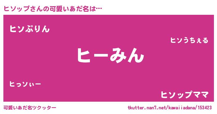 | 恥ずかしいあだ名 | 『ヒソちん』『ヒソップデラックス』 |