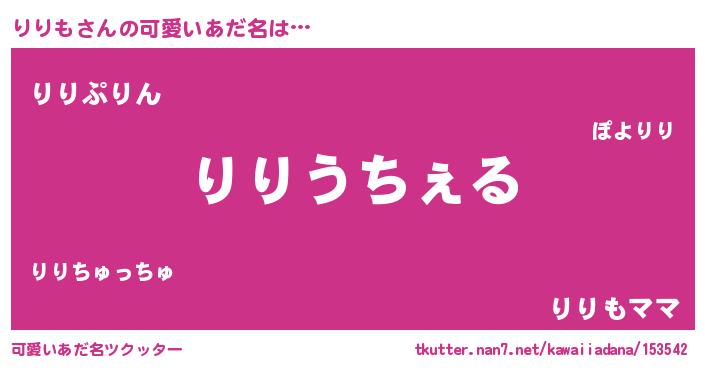 | 男性向けラノベタイトル風あだ名 | 『Re:りりもから始める異世界生活』 |