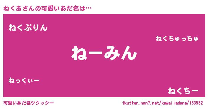 | 意味不明あだ名 | 『もやし科ねくあ属』『永久保存ねくあ』 |