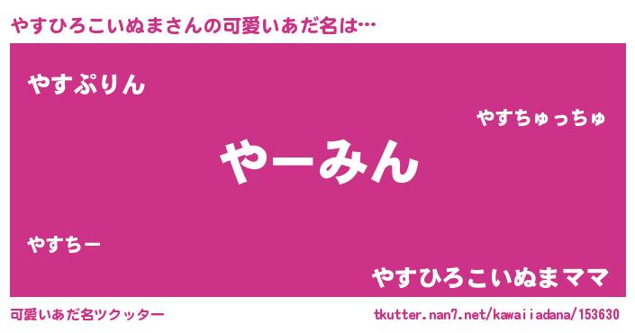 | 男性向けラノベタイトル風あだ名 | 『うちのやすひろこいぬまが世界を掌握している!』 |