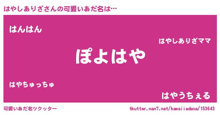 | 恥ずかしいあだ名 | 『プリティーはやしありざ』『はやちん』 |