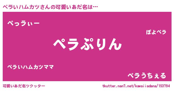 | 欧米人風あだ名 | 『トリンドルペラいハムカツ』 |