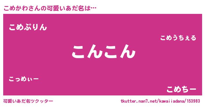 | ヒーロー風カッコイイあだ名 | 『スーパーコメカワ』『天弓騎士コメ』 |