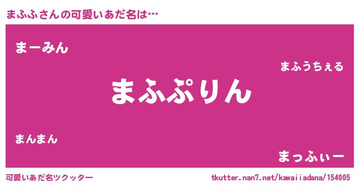 | 意味不明あだ名 | 『めかぶ科まふふ属』『自称まふふ』 |