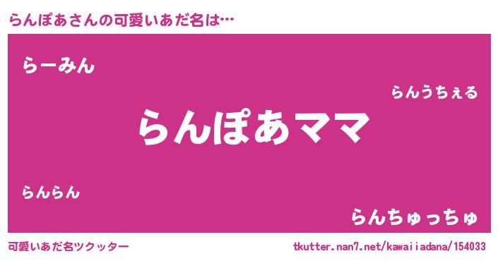 | ヘコむあだ名 | 『らんぽあ(笑)』『らんにゅー』 |