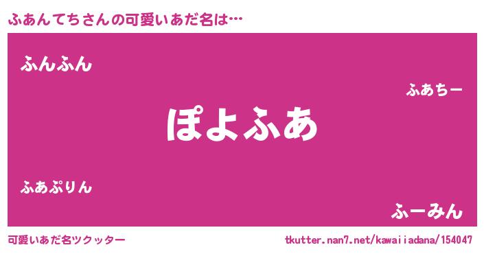 | 恥ずかしいあだ名 | 『プリティーふあんてち』『ふあっちょ』 |