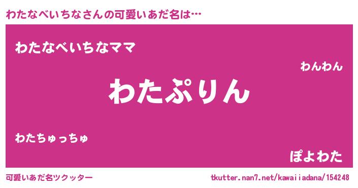 | ヘコむあだ名 | 『わたなべいちな(爆)』『わたふぇ~』 |