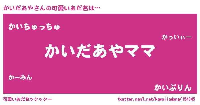 | ヘコむあだ名 | 『かいだあや(苦笑)』『かいっぺ』 |