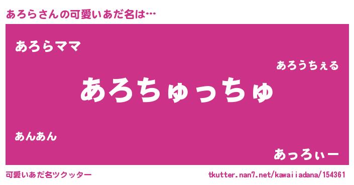 | ヘコむあだ名 | 『あろら(笑)』『あろお』『レバニラ』 |