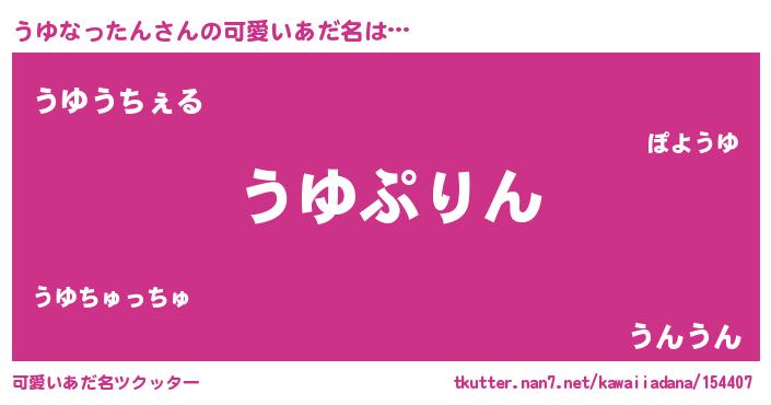 | 女子向けラノベタイトル風あだ名 | 『うゆなったんの玉の輿計画!』 |