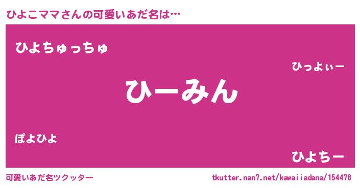 | ヒーロー風カッコイイあだ名 | 『友情の使者ひよこママ』『天弓騎士ヒヨ』 |