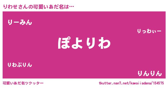 | ヘコむあだ名 | 『りわもー』『りわっ子』『なまこ酢』 |