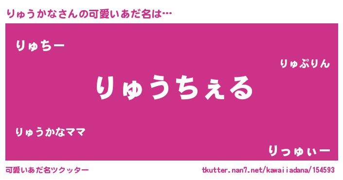 | 男性向けラノベタイトル風あだ名 | 『Re:りゅうかなから始める異世界生活』 |