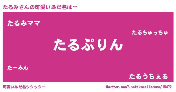 | 男性向けラノベタイトル風あだ名 | 『たるみ~年齢イコール彼女いない歴の魔法使い~』 |