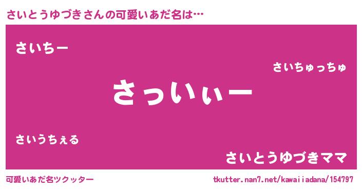 | 女子向けラノベタイトル風あだ名 | 『さいとうゆづきの卵を拾いまして』 |