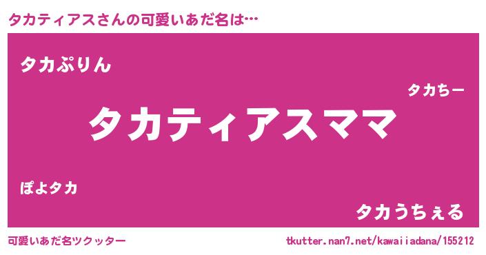 | 男性向けラノベタイトル風あだ名 | 『タカティアスという概念が存在しない退屈な世界 』 |