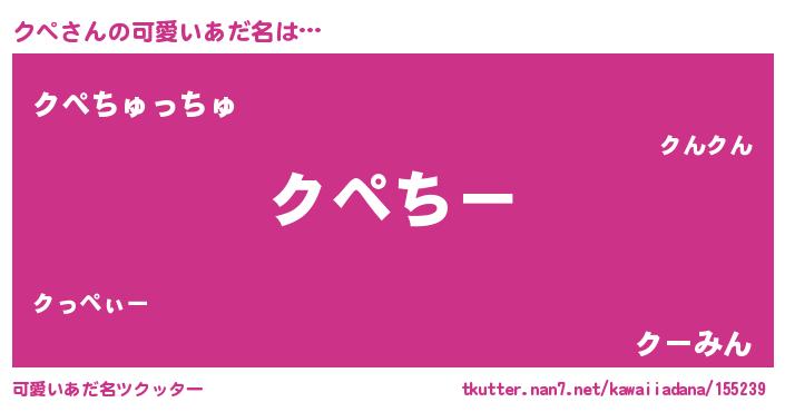 | 女子向けラノベタイトル風あだ名 | 『クペの婚約者』『クペ恋絵巻』 |