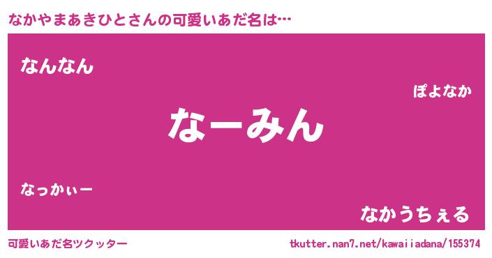 | 男性向けラノベタイトル風あだ名 | 『うちのなかやまあきひとが世界を掌握している!』 |