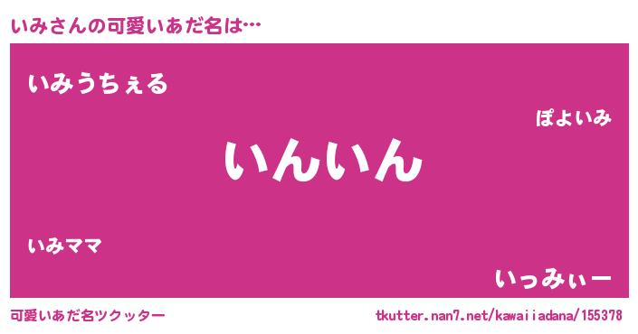 | ヘコむあだ名 | 『いみっふぃ~』『いみぷりん』 |