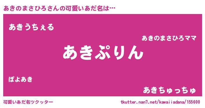 | 恥ずかしいあだ名 | 『アキノマサヒロデラックス』『あきちん』 |