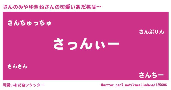 | 意味不明あだ名 | 『とにかく怪しいさんのみやゆきね』 |