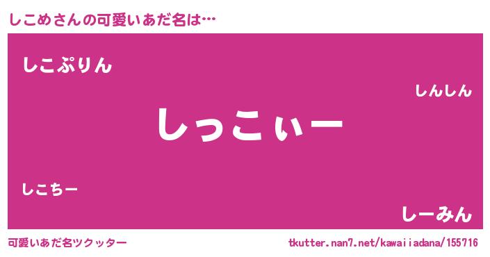| 意味不明あだ名 | 『とにかく怪しいしこめ』 |