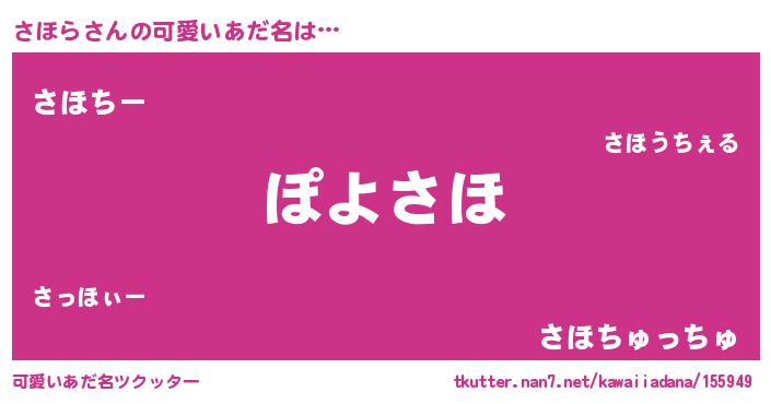 | ヘコむあだ名 | 『豆乳』『さほぷりん』『さほら(爆)』 |