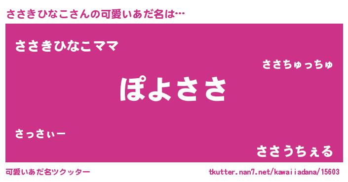 | ヘコむあだ名 | 『ささきひなこ(笑)』『ささっ子』 |