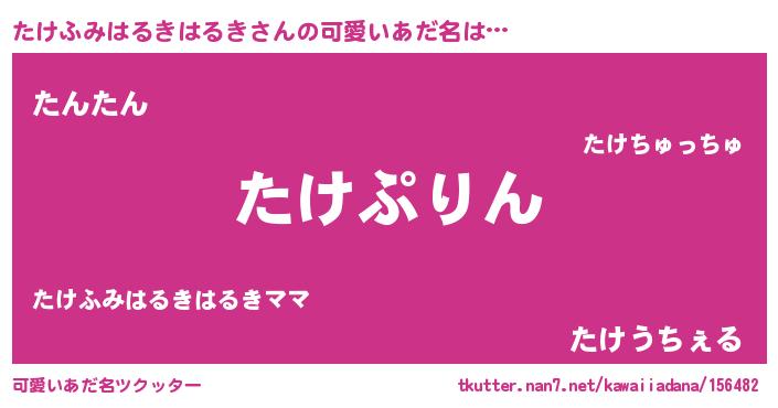 | 女子向けラノベタイトル風あだ名 | 『たけふみはるきはるきの玉の輿計画!』 |