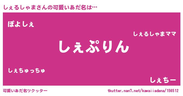 | 男性向けラノベタイトル風あだ名 | 『しぇるしゃま~年齢イコール彼女いない歴の魔法使い~』 |