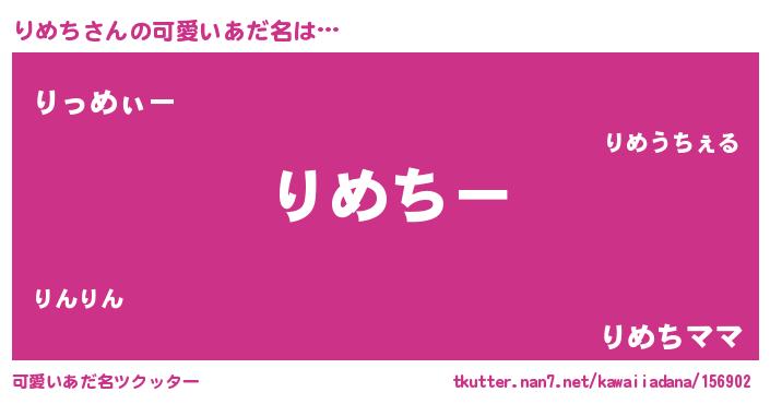 | 意味不明あだ名 | 『りめちフォーエバー』『永久保存りめち』 |
