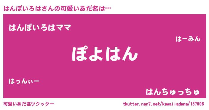 | ヘコむあだ名 | 『はんぽいろは(苦笑)』『はんぷりん』 |