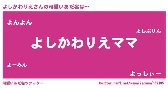 | 意味不明あだ名 | 『永久保存よしかわりえ』 |