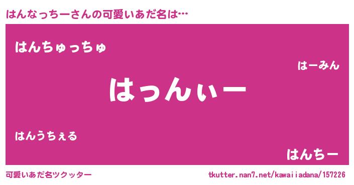 | 男性向けラノベタイトル風あだ名 | 『はんなっちーの嫁は女の子じゃないと思った?』 |
