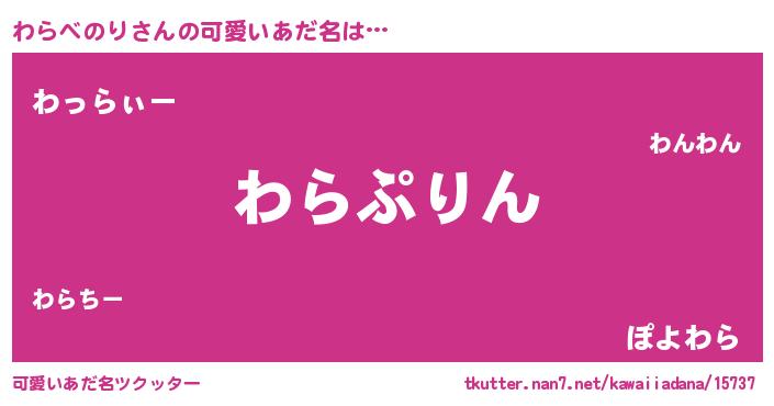 | 胡散臭い通販商品みたいなあだ名 | 『信頼と実績のサプリメント…その名も「わらべのり」』 |