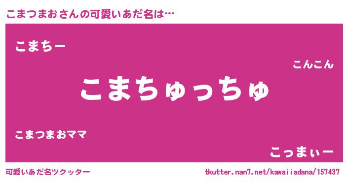 | 男性向けラノベタイトル風あだ名 | 『おまえをオタクにしてやるから、俺をこまつまおにしてくれ! 』 |