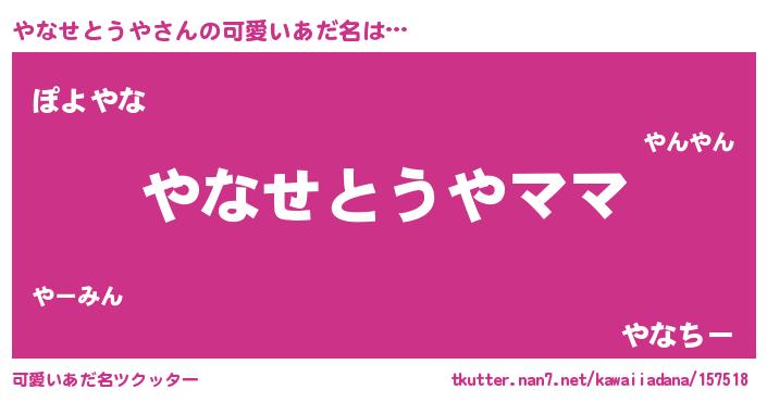 | ヘコむあだ名 | 『やなせとうや(笑)』『酢こんぶ』 |