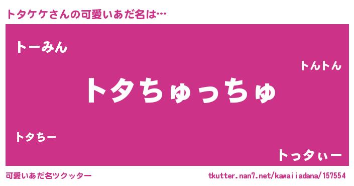 | 女子向けラノベタイトル風あだ名 | 『トタケケ恋絵巻』『トタケケ伯爵の花嫁』 |
