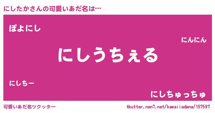 | 恥ずかしいあだ名 | 『ニシタカデラックス』『にしっちょ』 |