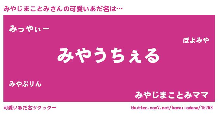 | ヘコむあだ名 | 『みや太郎』『みやじまことみ(笑)』 |