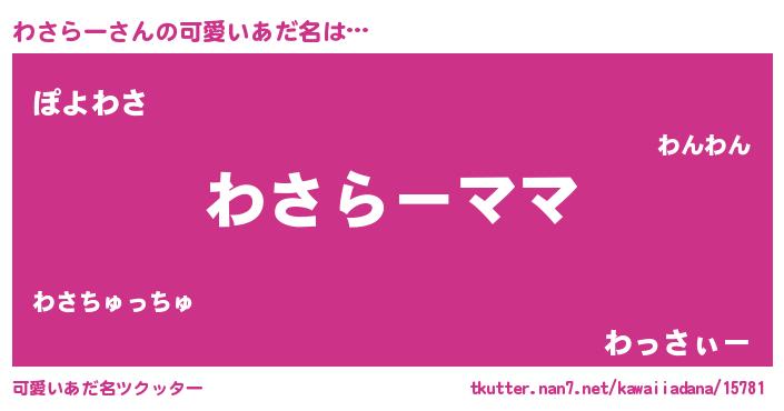 | 意味不明あだ名 | 『永久保存わさらー』『ペロリンわさらー』 |
