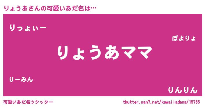 | 女子向けラノベタイトル風あだ名 | 『異世界で失敗しない100のりょうあ』 |