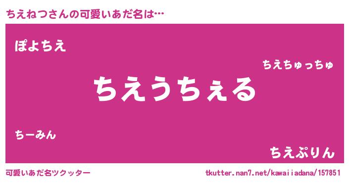 | ヘコむあだ名 | 『ちえぷりん』『ちえねつ(笑)』 |