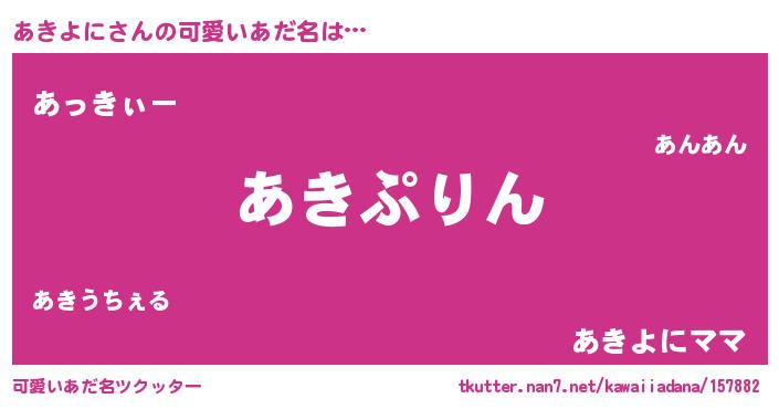 | 恥ずかしいあだ名 | 『アキリンリン』『あきちん』 |