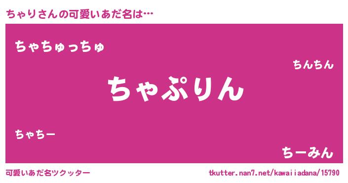 | ヒーロー風カッコイイあだ名 | 『慈愛の使者ちゃり』『スーパーチャリ』 |